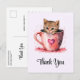 Carte Postale Cute Kitten dans un Teacup avec Merci de coeur