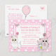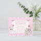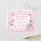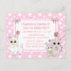 Sweet dessiné à la main kitty cat, souris et llama rose et blanc pois inclinent les invitations de la fête d'anniversaire de fille.