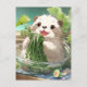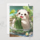 Une mignonne loutre de bande dessinée est assise dans un bol de salade qu'elle mange