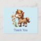 Carte postale Merci avec une adorable illustration. Un petit poney marron se régalant de marguerites.