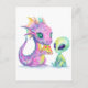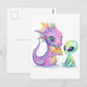 Carte Postale Cute Purple Dragon Bébé Manger Pizza Avec Alien