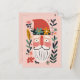 Carte Postale Cute Santa Claus Retro Floral Pink Merry Christmas