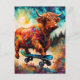 Carte Postale Cute Skateboard Highland Cow