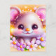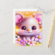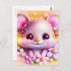 Cute Kawaii Pink Mouse, ce design présente une souris rose kawaii aigu avec des fleurs de lavande.