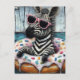 Carte Postale Cute Zebra profite d'un voyage en flottant à Dough