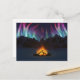 Dans une vallée enneigée, une nuit glacée dans l'hiver, un feu de joie se lève pour faire miroiter les aurores boréales qui remplissent le ciel au-dessus des montagnes lointaines.