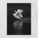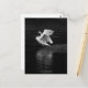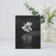 Une photographie en noir et blanc d'un cygne trompette debout dans un endroit peu profond d'une rivière tout en étendant ses ailes. Le courant de la rivière et le reflet du cygne sont d'une couleur plus claire que l'arrière-plan de la rivière, créant ainsi l'illusion d'une forme à la surface de l'eau. Photographie Copyright ©Kimberly J Tilley.