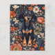 Carte Postale Dachshund Adorable Entouré De Fleurs Vibrantes