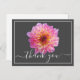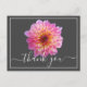 Carte Postale Dahlia rose et jaune Fond gris Merci