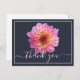 Carte Postale Dahlia rose et jaune Fond Navy Merci