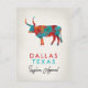 Design Dallas Texas lumineux et coloré qui est approuvé à 100% Longhorn. Couleurs chaudes de rouge, orange, turquoise et aqua dans un motif de style aquarelle sur un arrière - plan neutre.