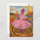 Une femme alien habillée en rose et perles avec un verre de jus d'orange AI générée