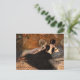 Une carte postale d'art avec le tableau, Lady with Fans - A Portrait of Nina de Callias (vers 1874), d'Edouard Manet (1832-1883). Un Peintre Impressionniste Français. Nina de Callias était le modèle de Manet. Elle pose sur un canapé dans le studio de l'artiste avec des ventilateurs dans l'arrière - plan.