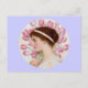 Carte Postale Dame en robe classique avec tulipes roses
