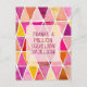 Des formes de diamant peintes à la main en aquarelle dans des tons roses, pêches et or forment l'arrière-plan de cette carte de remerciement. Un message spécial est inscrit au verso de la carte - tout cela pouvant être facilement modifié.