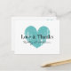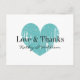 Amour et merci carte postale avec coeur vintage. Aqua / Turquoise bleu défraîchi coeur mariages de cartes de remerciements. Design romantique avec symbole d'amour patiné. Idéal pour les fêtes d'été ou les mariages rustiques et chic. Elégant script typographie design personnalisé avec nom de mariée et mariée. Graphique d'icônes joli et unique.