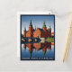 Plongez dans un conte de fées avec cette élégante carte postale danoise représentant le château de Frederiksborg. Avec ses tours en brique rouge, ses flèches vertes et ses reflets dans l'eau sereine, ce design de style vintage célèbre la romance et l'histoire de l'Europe médiévale.