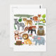 Illustration d'une collection d'animaux de dessin animé, comprenant un alligator vert, un zèbre avec des rayures noires et blanches, un tigre avec des rayures orange et noires, un renard rouge avec un ventre blanc, un toucan avec un bec jaune, un panda roux avec un corps brun et noir, un hibou avec des plumes brunes, un singe suspendu à un tronc d'arbre, un lion avec une crinière jaune et un éléphant gris. Les animaux sont disposés de manière ludique et fantaisiste, certains étant entourés de feuilles vertes et de champignons rouges. L'illustration est réalisée dans un style simple et cartoon avec des couleurs vives et des contours gras.