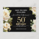 Fête d'anniversaire 50 ans aquarelle roses blanches. Design floral élégant pour une célébration d'anniversaire de n'importe quelle année. Facile à personnaliser avec le modèle. Magnifique modèle de conception d'anniversaire à sauvegarder.