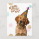 Célébrez la journée spéciale de quelqu'un avec cette charmante carte postale représentant un adorable chiot golden retriever portant un chapeau de fête festif. Le design ludique est accompagné d'un message audacieux « Joyeux Anniversaire ! » dans une police moderne et élégante. Parfait pour envoyer des vœux d'anniversaire chaleureux aux amoureux des chiens et aux amis. Cette carte postale est sûre de faire sourire et d'illuminer leur anniversaire ! Idéal pour un usage personnel ou comme cadeau unique.