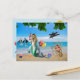 Cette carte a été conçue en utilisant plusieurs illustrations de plage ainsi que quelques photos que j'ai prises de baleines (orques), de dauphins et d'étoiles de mer.