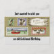 Image géniale et vintage d'un chien, de pêche, de golf, de canards et de vœux d'anniversaire sur une planche en bois, est présentée sur cette carte postale d'anniversaire. Le recto de la carte postale indique, "Je voulais juste vous souhaiter un anniversaire à l'ancienne". Le verso de la carte postale indique,"Passez une excellente journée" ! Un excellent vœu d'anniversaire à envoyer à un ami ou un membre de la famille masculin.