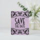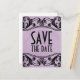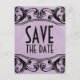 Élégante et chic carte postale d'annonce de mariage aux tourbillons vintage avec un fond lavande texturé faux en détresse et des bordures à fioritures en spirale. Ce design d'aspect antique est parfait pour annoncer un mariage sur le thème vintage. Facile à personnaliser, il suffit d'ajouter vos détails de mariage dans les champs de texte prévus. Cliquez sur "Personnaliser" pour trouver plus d'options de personnalisation.