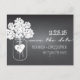 Une jolie jarre Mason pleine d'hydrangeas blancs décore cette jolie carte postale d'annonce de mariage en ardoise.
