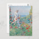 Dans le jardin (Celia Thaxter dans son jardin) (1892) | Œuvre originale du peintre impressionniste américain Childe Hassam (1859-1935). La pièce représente une femme debout dans un beau jardin vert luxuriant avec des fleurs roses et rouges.