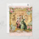 Une belle photo d'un couple du XVIIIe siècle dansant à Versailles. La scène est entourée d'un cadre soigné et de roses roses roses. Amusant pour la fête de fiançailles, anniversaire, mariage et plus. Couleurs pastel dans un style vintage.