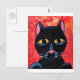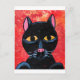 Un mignon petit chat noir avec un arrière - plan rouge et orange enflammé.