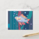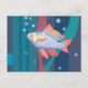 Carte postale présentant une œuvre d'art animalière sous-marine, une perche aux nageoires et à la queue rouges nage dans les algues.