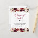 Carte Postale Date de mariage reportée Floral Burgundy Red Blush