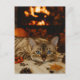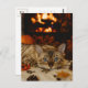 Carte postale d'automne cosy avec chat et cheminée