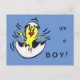 C'est un GARÇON ! Ce Cartoon de Bébé Chick vient au Monde de son Oeuf... Vous pouvez conserver ce texte ou ajouter votre propre texte, si vous le souhaitez. Vous pouvez choisir votre propre couleur Arrière - plan, si vous voulez.