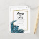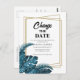 Carte postale de changement de date avec feuillage bleu marine. Carte postale de changement de date avec feuilles bleues.