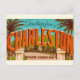 Une carte postale de vœux colorée et vintage de la ville de Charleston en Caroline du Sud réutilisée comme nouvelle carte postale.