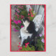 Carte postale de chat smoking mignon avec de jolies fleurs. Conçue à partir de ma photographie originale.