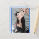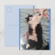 Carte postale de chat smoking mignon avec de jolies fleurs. Conçue à partir de ma photographie originale.
