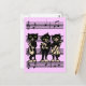 Voici une image vintage des années 30 de trois chats noirs aux yeux verts jouant de leurs instruments de musique. Ils font de la musique avec un saxophone, un violon et une guitare. L'arrière - plan est rose pâle avec une feuille de notes musicales. Voir mon magasin pour d'autres produits avec ce design.