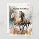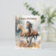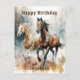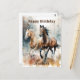 Carte postale de cheval sauvage occidental. Beaux chevaux bruns et beiges à l'aquarelle courant sauvagement et librement dans la nature. Créez une carte postale personnalisée en ajoutant le nom du destinataire.