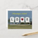 Carte postale de Chincoteague Island. Dispose de chaises expliquant le mot LOVE.