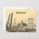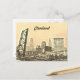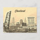 Image récente de Cleveland, Ohio avec la rivière Cuyahoga au premier plan - montre une vue vitale du centre-ville avec plusieurs des principaux bâtiments du centre-ville de Cleveland. Le contraste clair des bâtiments avec la couleur sépia fait une carte postale accrocheuse pour les fans de Cleveland.