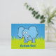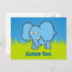 Dessin animé de bébé éléphant bleu mignon. Texte personnalisé.