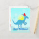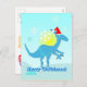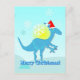 Carte postale de dinosaure de salutation de Joyeux Noël. Un petit dinosaure bleu mignon de Parasaurolophus de bande dessinée avec un casquette rouge de Père Noël dans un paysage de neige d'hiver avec la neige s'écaille tombant de la carte postale de ciel. Cet "Joyeux Noël !" la carte postale de dinosaure de bande dessinée est entièrement personnalisable ! Changez le texte "Joyeux Noël !" et ajoutez vos images et textes ! Une carte mignonne de dinosaures de salutations de Noël !