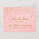 Carte postale de faire-part de Blush Pink & Gold Foil Dots Save The Date. Articles assortis disponibles.