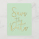 Carte postale de faire-part de sauvegarde Menthe & Or Écriture moderne.