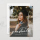 Carte postale faire-part de remise de diplômes avec un script de calligraphie moderne. Personnalisez avec votre propre année de diplôme, l'école et plus. Ajoutez des informations supplémentaires sur la cérémonie et la fête de remise des diplômes au dos.