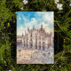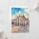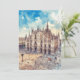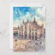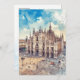Cette carte postale présente un portrait aquarelle de la cathédrale de Milan en Italie.
