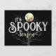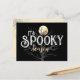 Cette conception comporte l'expression "C'est la saison Éffrayante", ainsi que l'image d'un arbre nu et d'une pleine lune. Le dos de la carte comprend un simple "Happy Halloween" saluant avec une toile d'araignée dans le coin supérieur gauche. Toutes les polices, images et texte peuvent être customisées, ainsi que les couleurs arrière - plans.